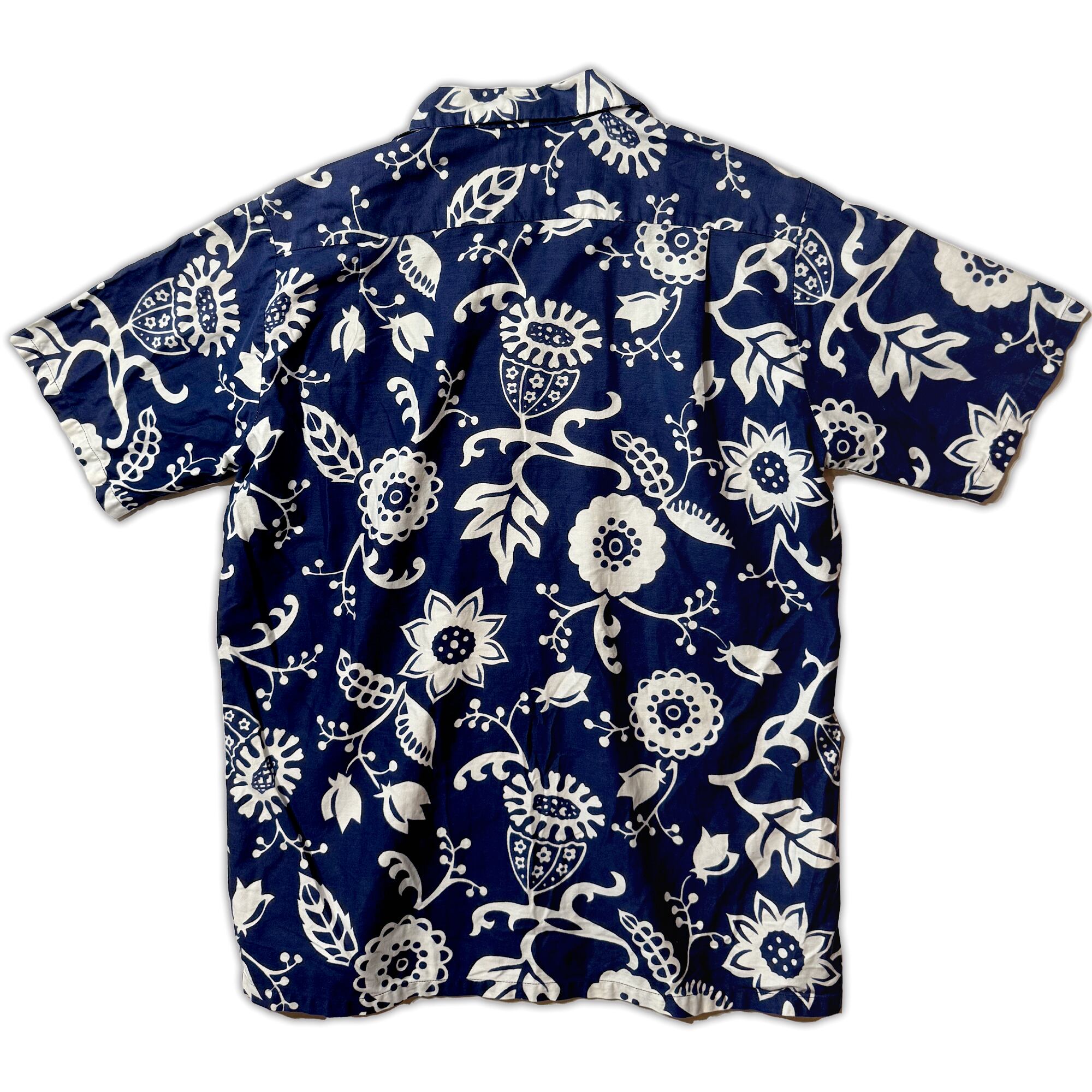 非常に珍しいオピウム(芥子/阿片)柄と思われるボタニカルパターンのハワイアンシャツです。ネイビー×白なのでコーディネートしやすいかと思います。人とはちょっと違ったものをお探しの方にオススメです。