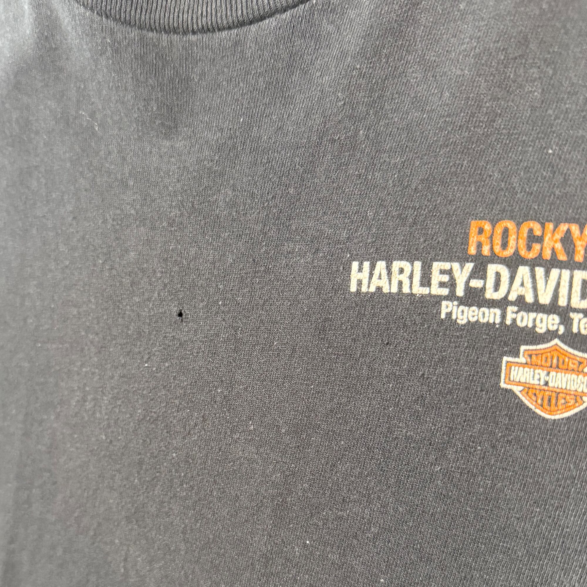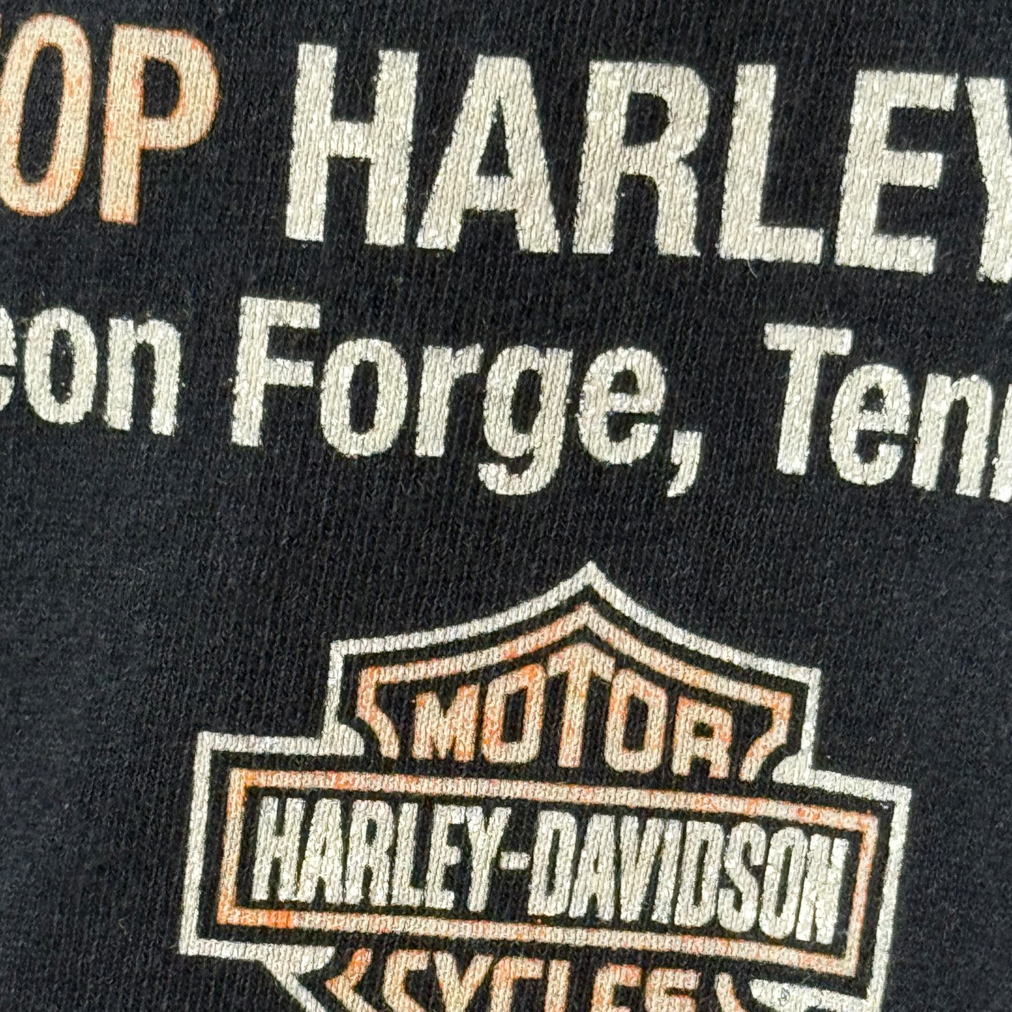 2000's Harley Davidson ハーレーダビッドソン Tennessee ドラゴン シールドロゴ プリント Tシャツ 半袖 黒