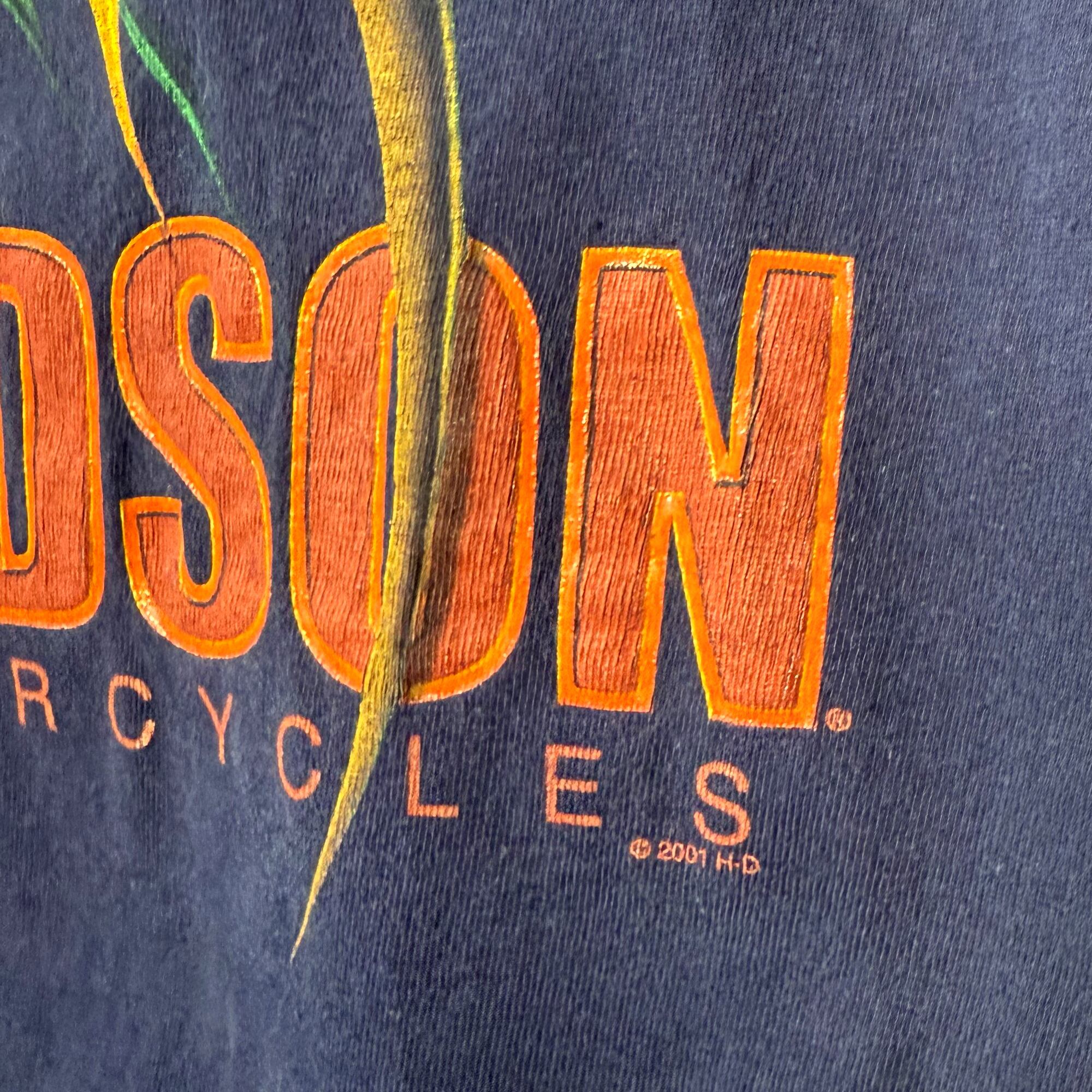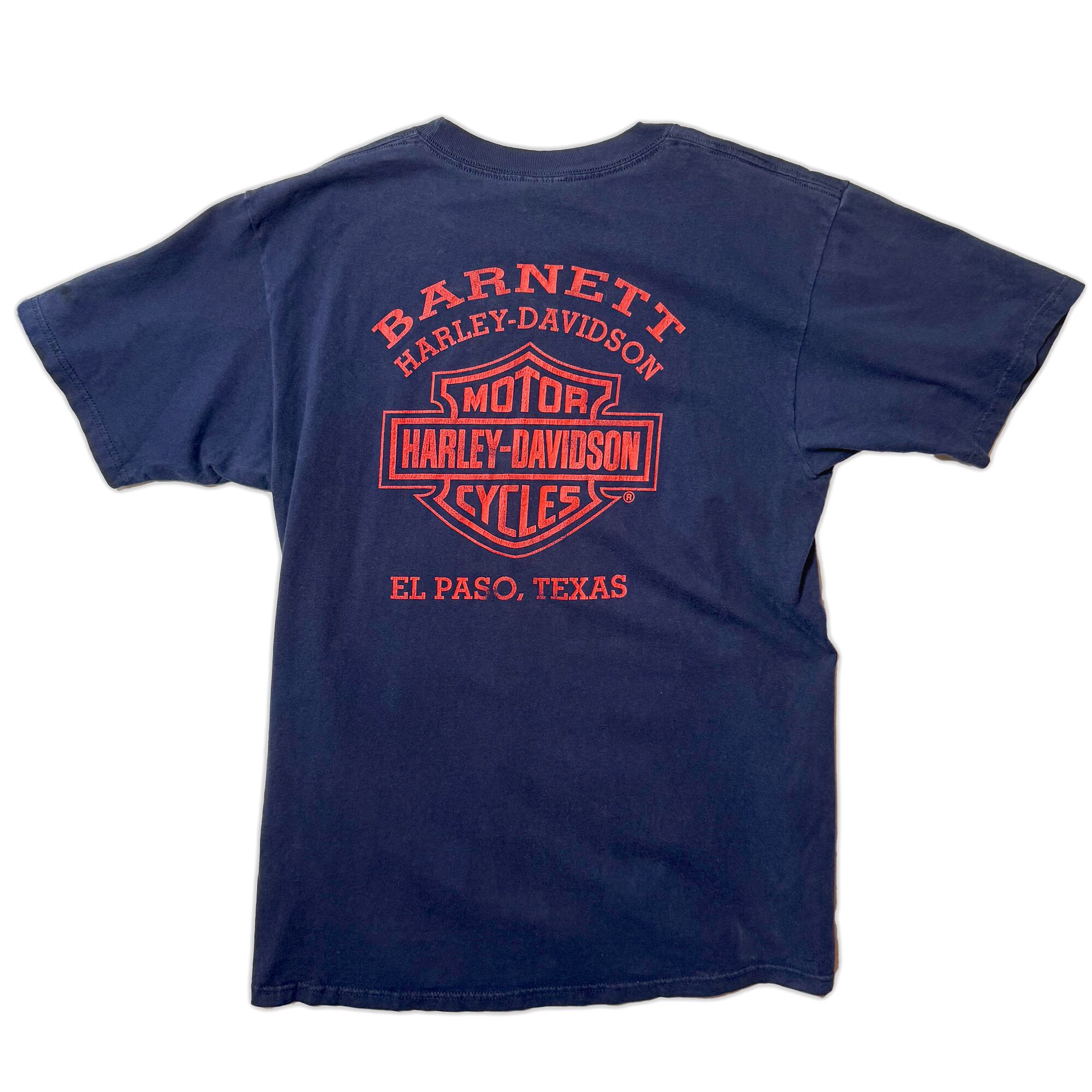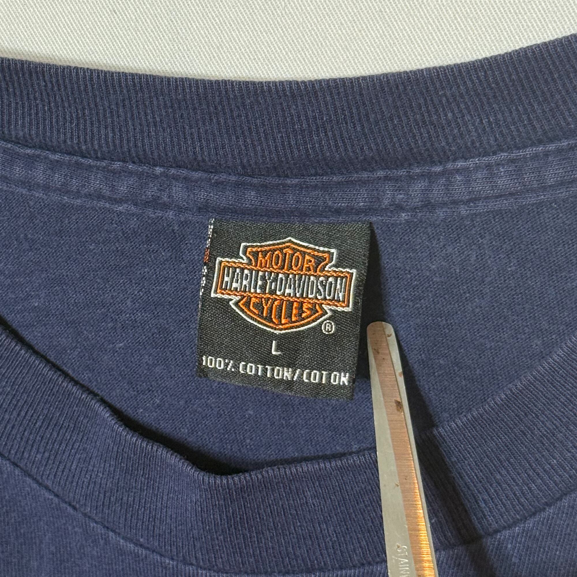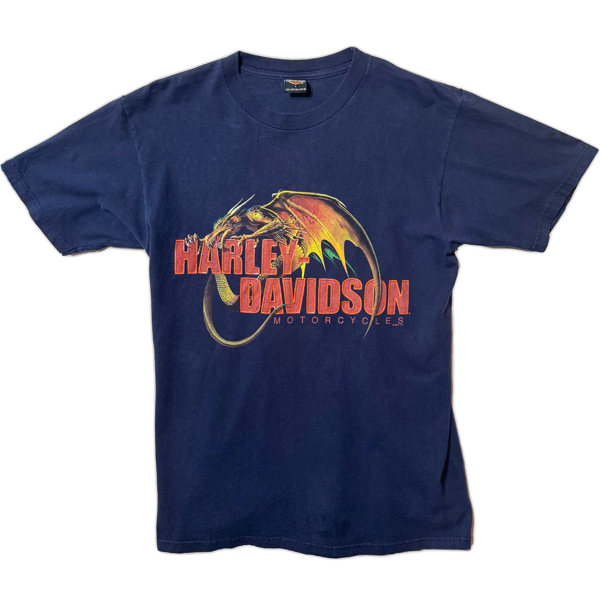 2000's Harley Davidson ハーレーダビッドソン TEXAS ドラゴン シールドロゴ プリント Tシャツ 半袖 デカプリ 紺 L
