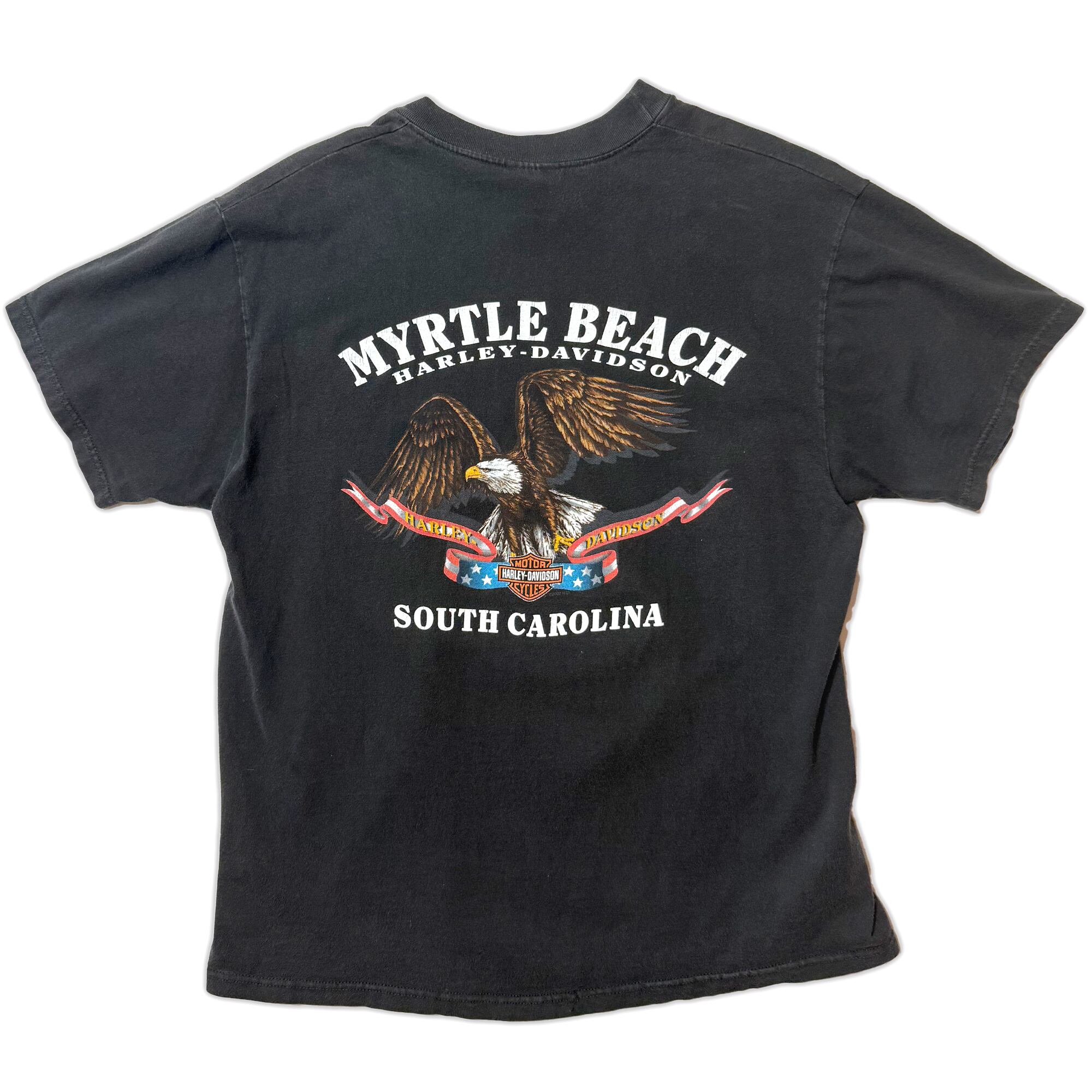 2000's USA製 Harley Davidson ハーレーダビッドソン South Carolina イーグル Tシャツ 半袖 黒 L