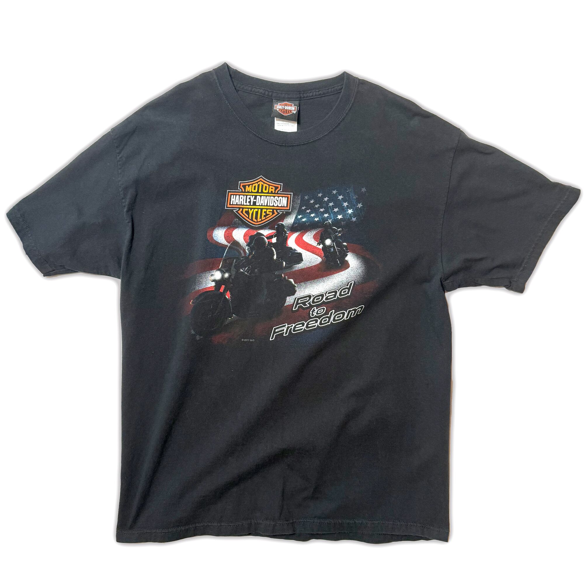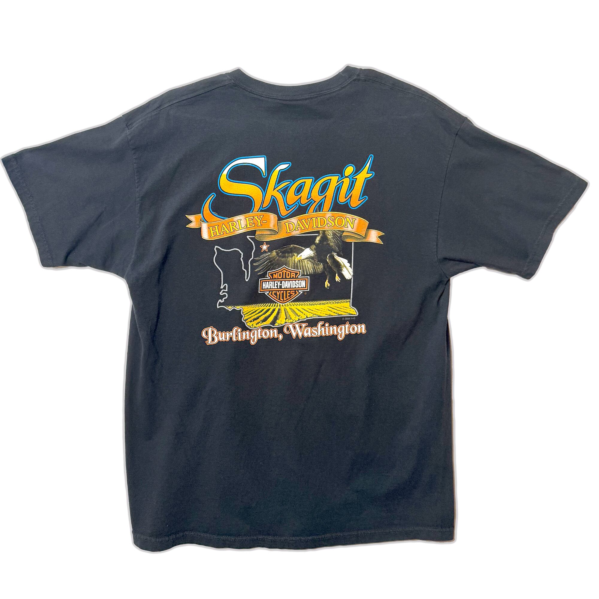 2000's USA製 Harley Davidson ハーレーダビッドソン Washington イーグルプリント Tシャツ 半袖 黒 L