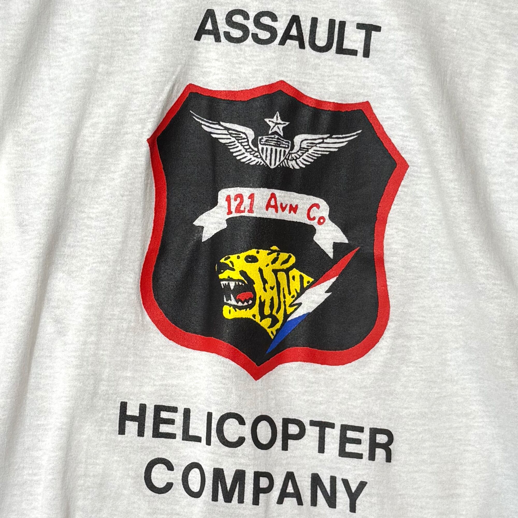 アメリカ陸軍の航空部隊の一つで、主にベトナム戦争時に活動した部隊「121st Assault Helicopter Company - Soc Trang Tigers, Vikings」のワッペンがプリントされています。恐らく水通しもされていないデッドストック品だと思われます。