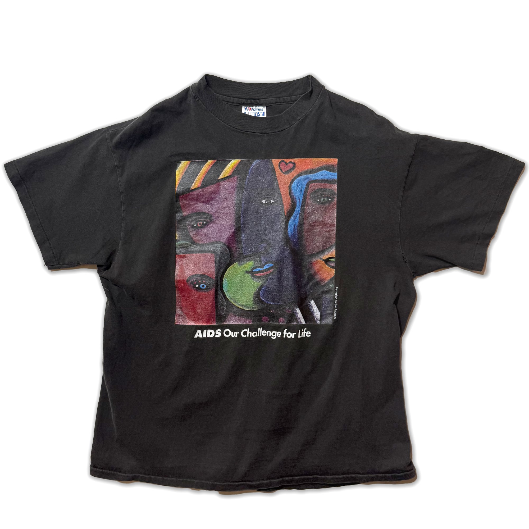 1990's USA製 Joe average エイズ AIDS our challenge アート Tシャツ 黒 L