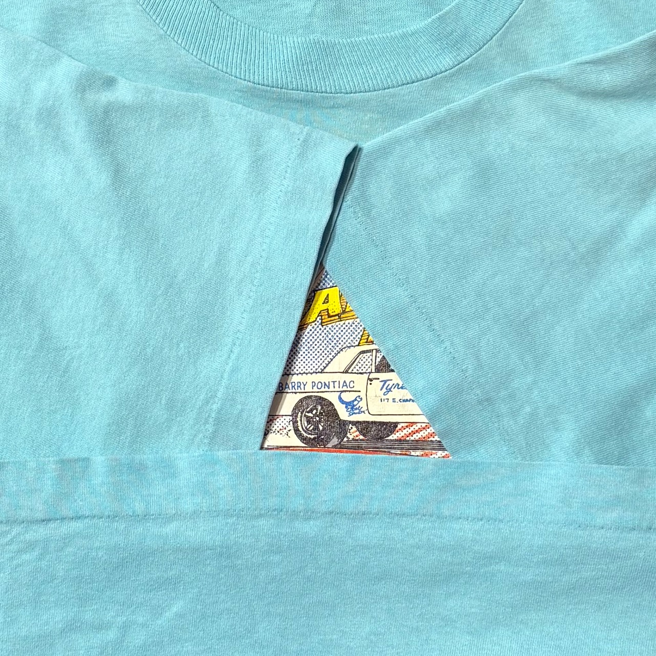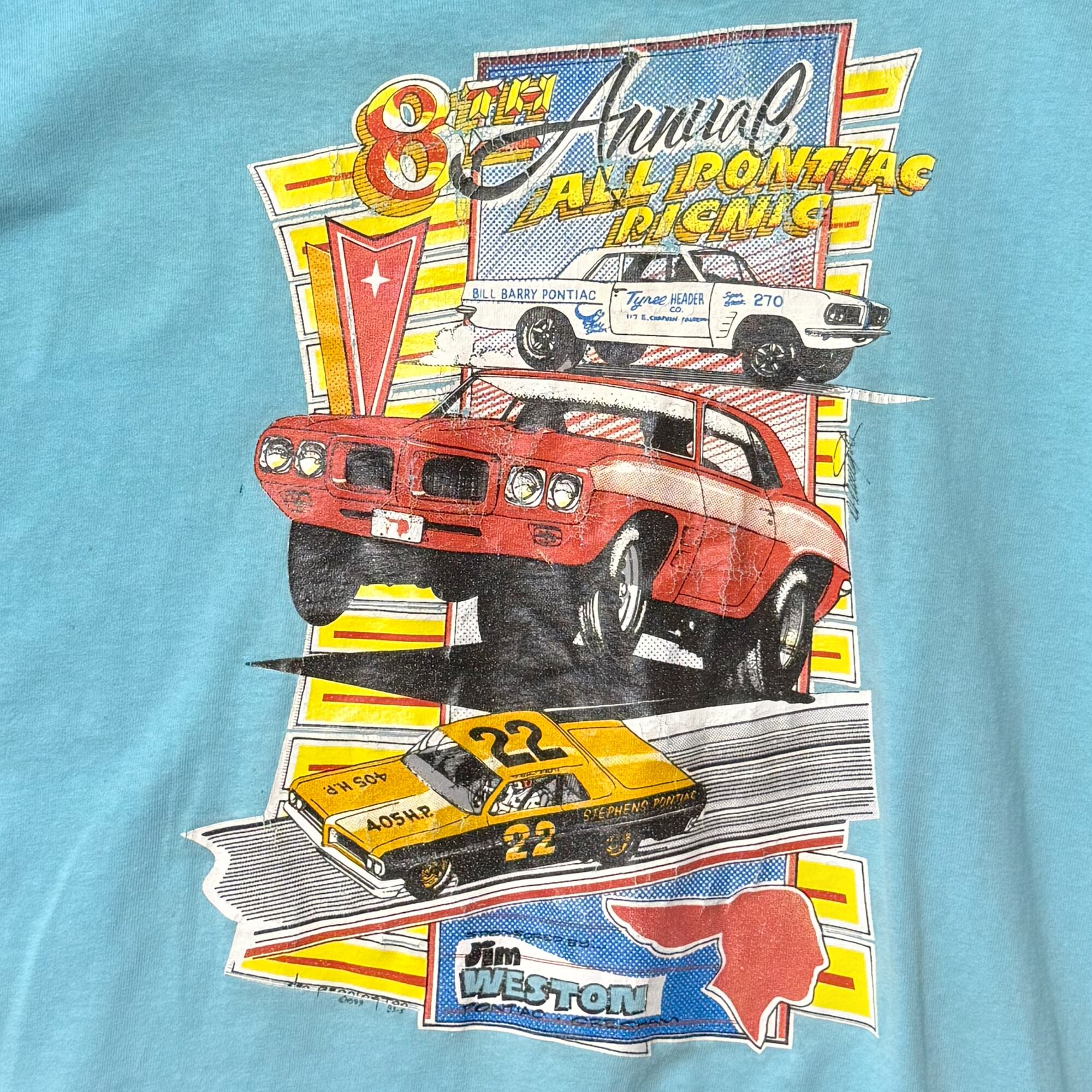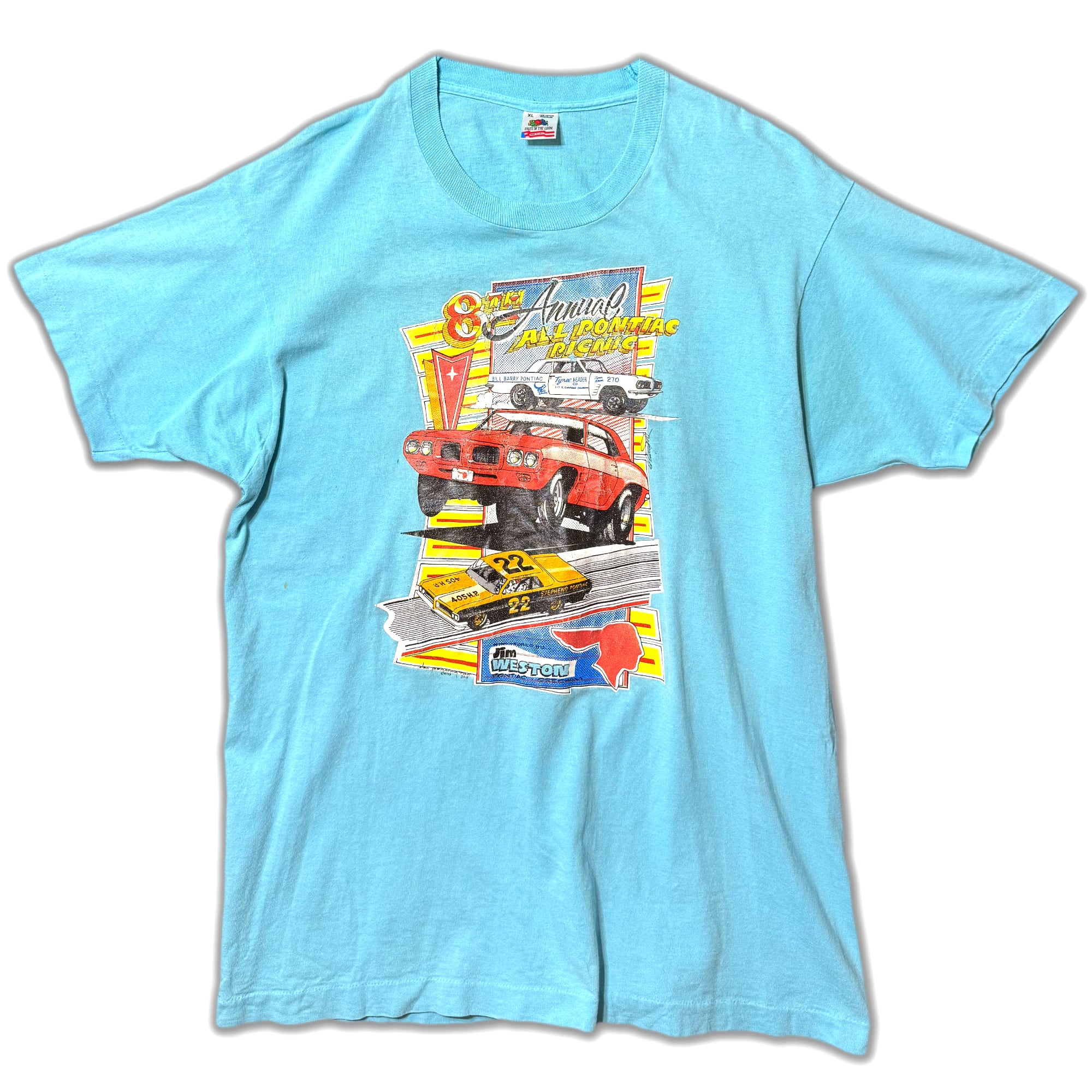 1990's USA製 Fruit of the room フルールオブザルーム All pontiac picnic シングルステッチ Tシャツ ポンティアック 水色 XL