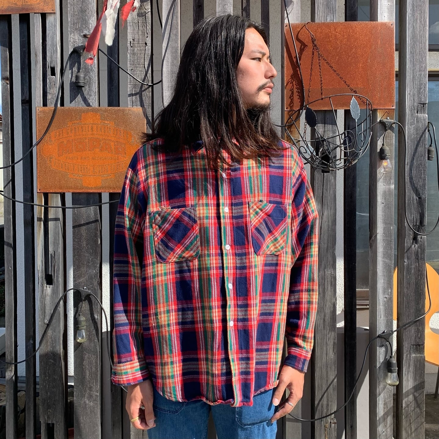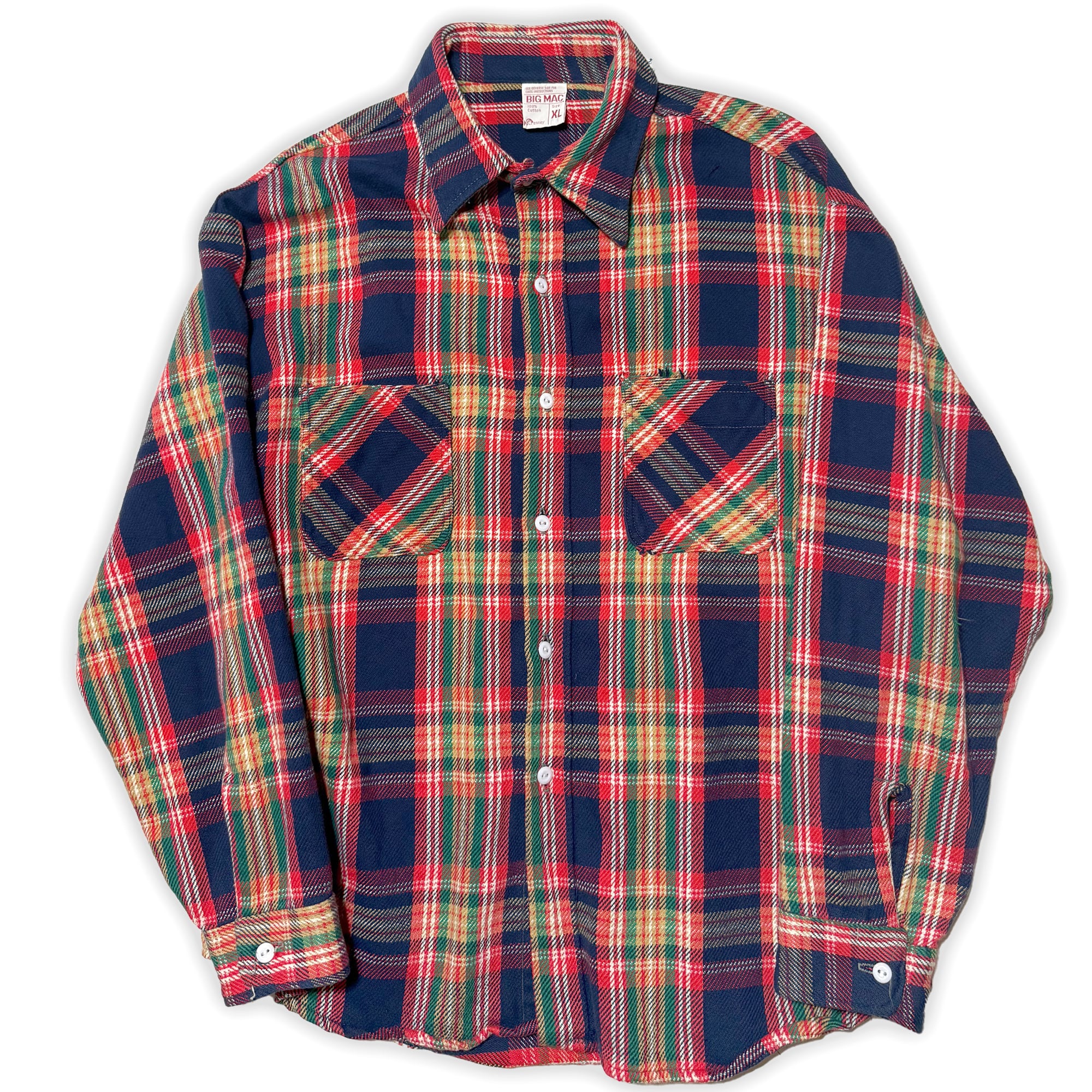 1970's USA製 BIG MAC ビッグマック 長袖 ヘビーネルシャツ チェック柄 赤・紺・緑 XL