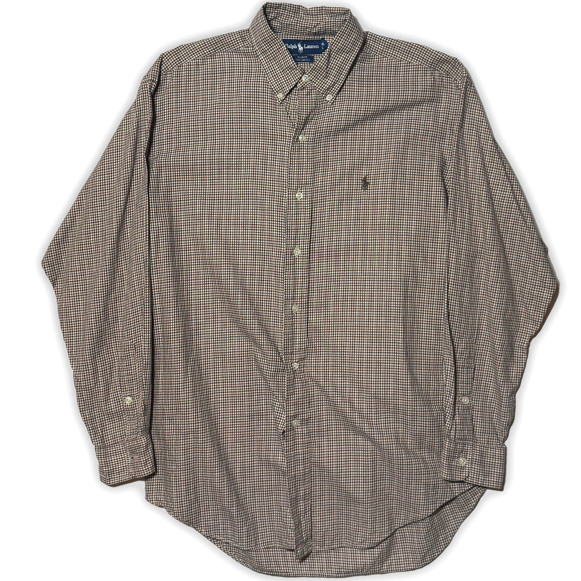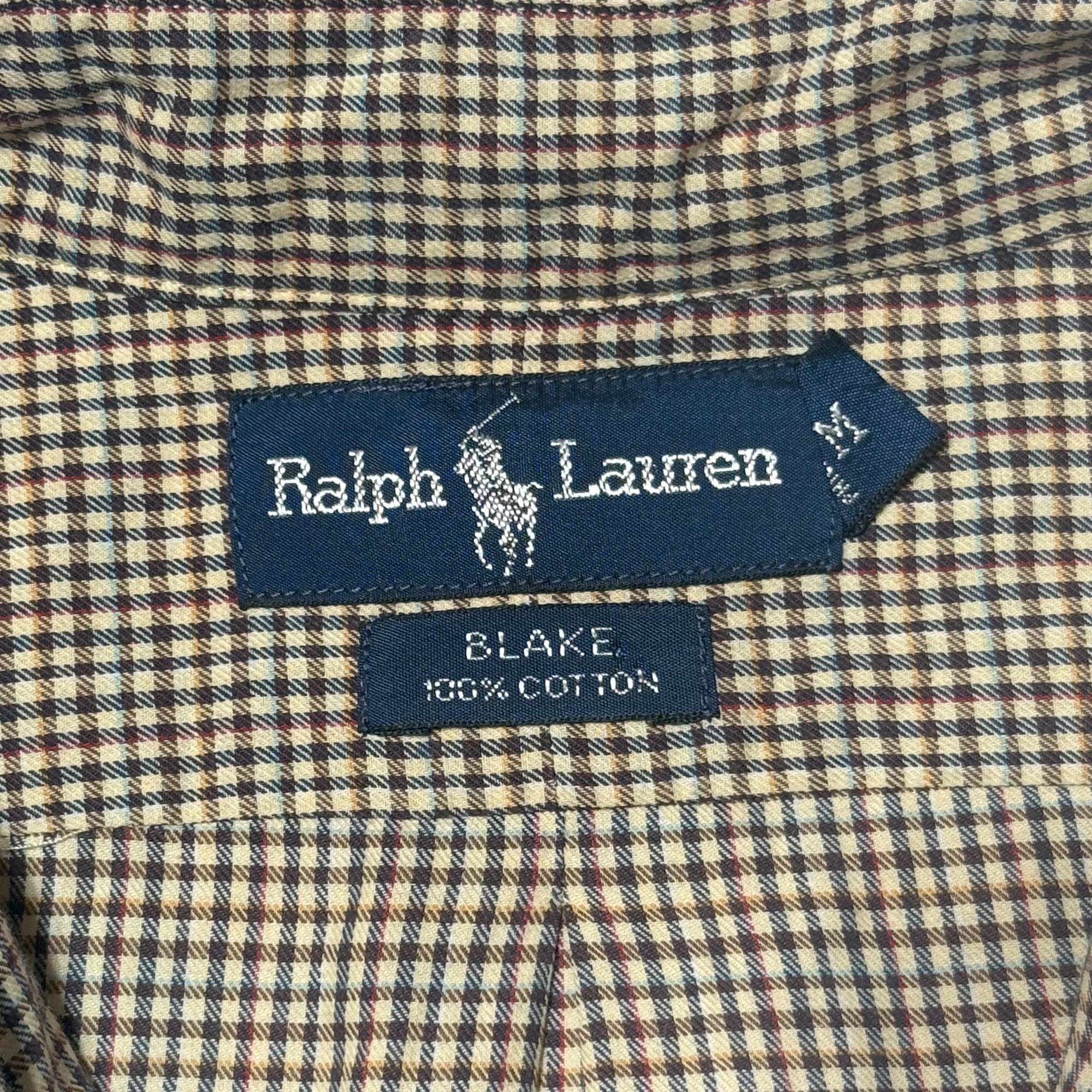 1990's フィリピン製 POLO Ralph Lauren ポロラルフローレン BLAKE 長袖 ボタンダウンシャツ チェック柄 茶 M