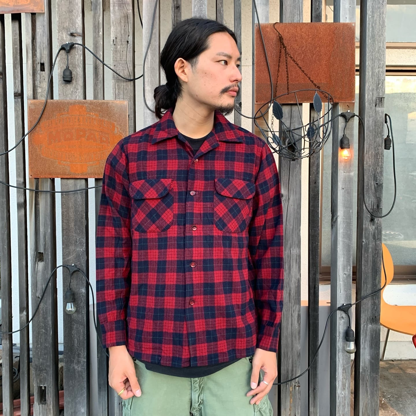 1960's USA製 PENDLETON ペンドルトン 長袖 オープンカラー ウールシャツ BOARD ボードシャツ チェック柄 赤・黒 M