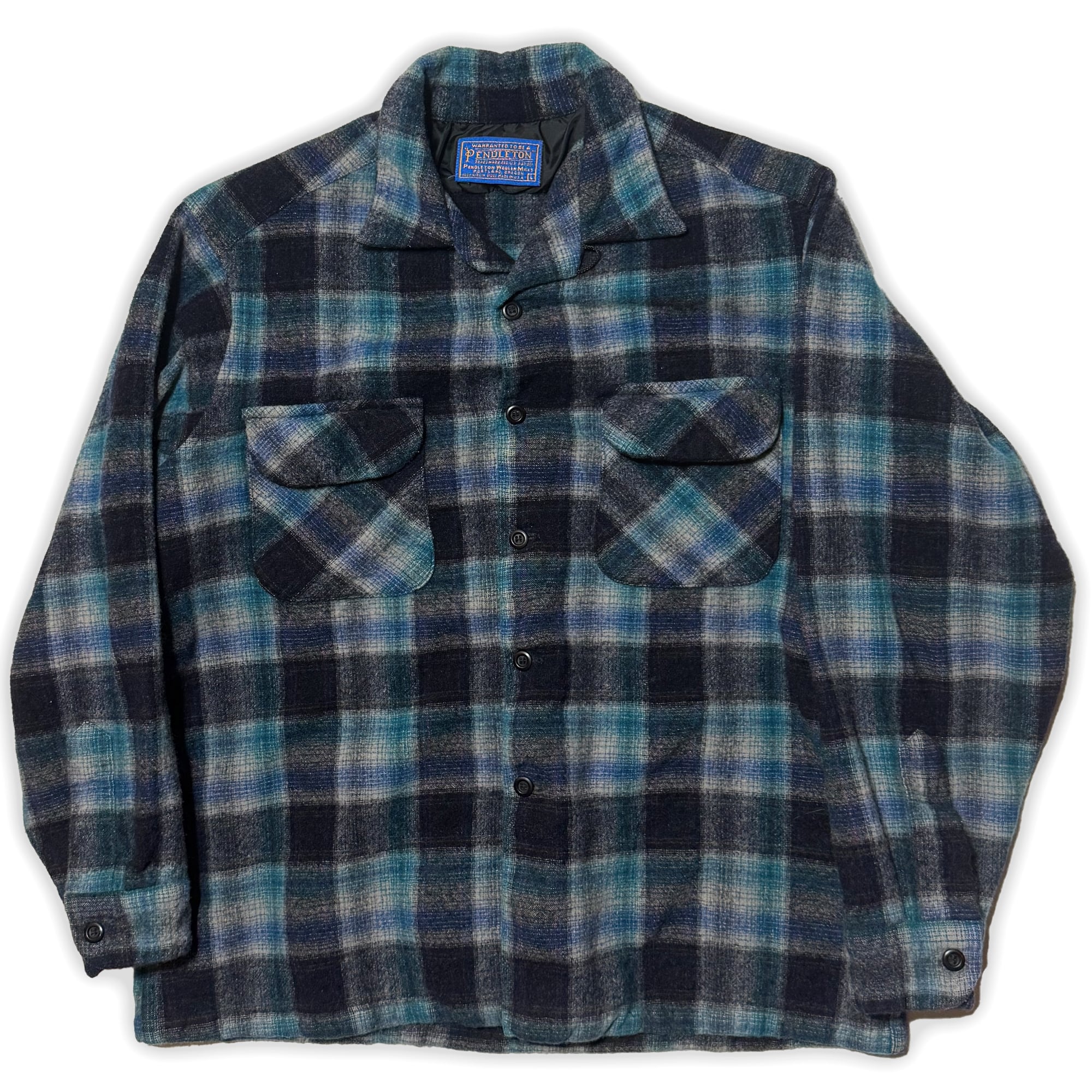 1960's USA製 PENDLETON ペンドルトン 長袖 オープンカラー ウールシャツ BOARD ボードシャツ チェック柄 青 L(実寸XS)