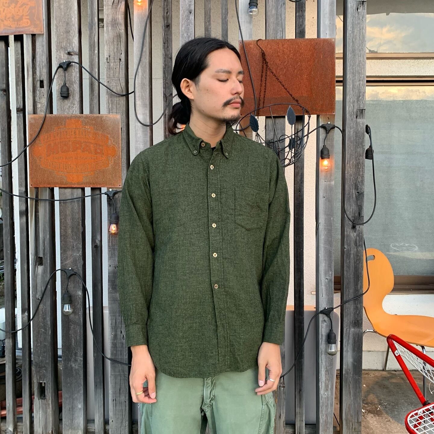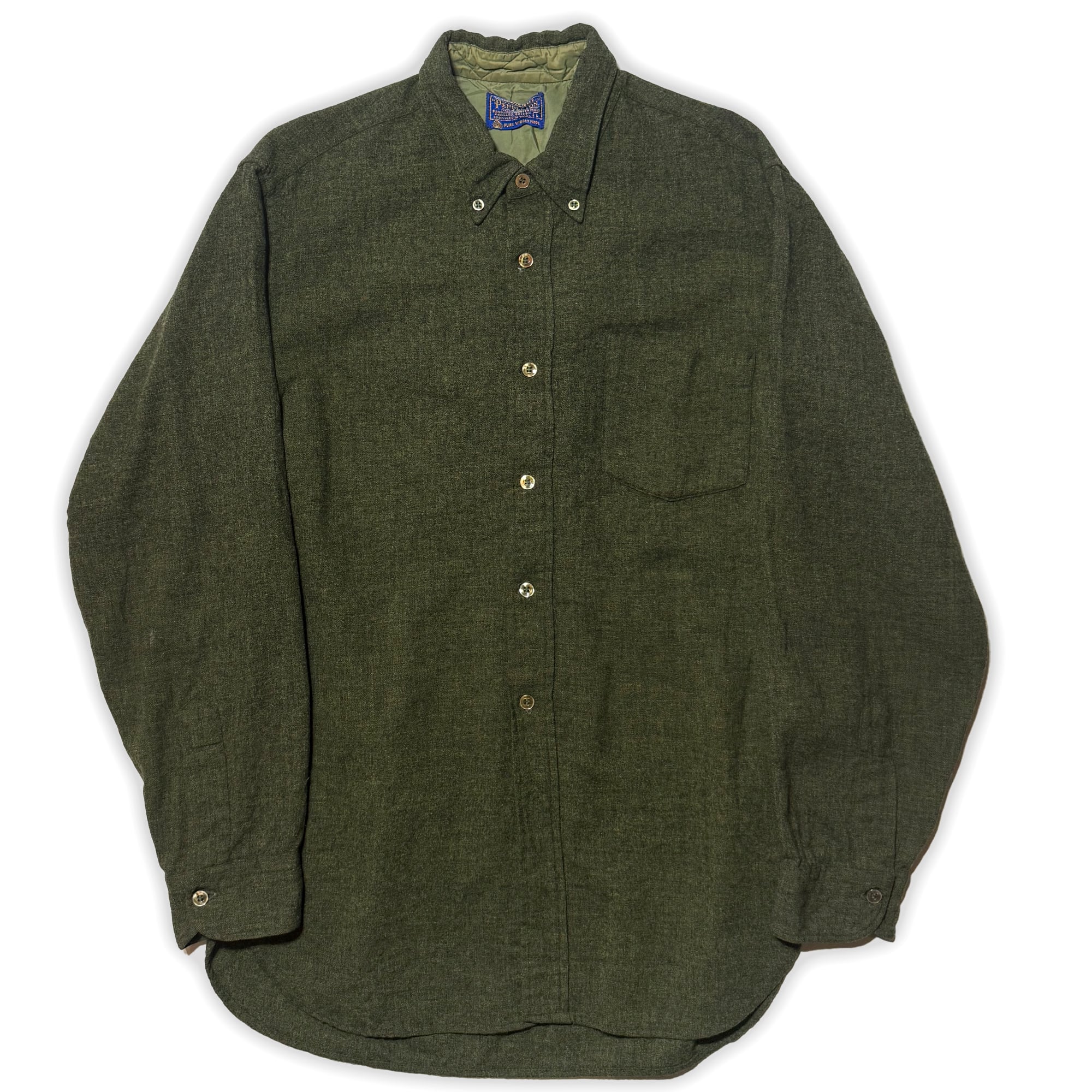 1960's USA製 PENDLETON ペンドルトン 長袖 ボタンダウン ウールシャツ 無地 緑 L