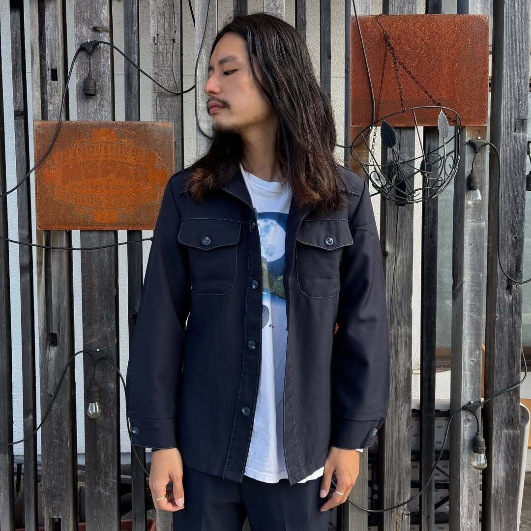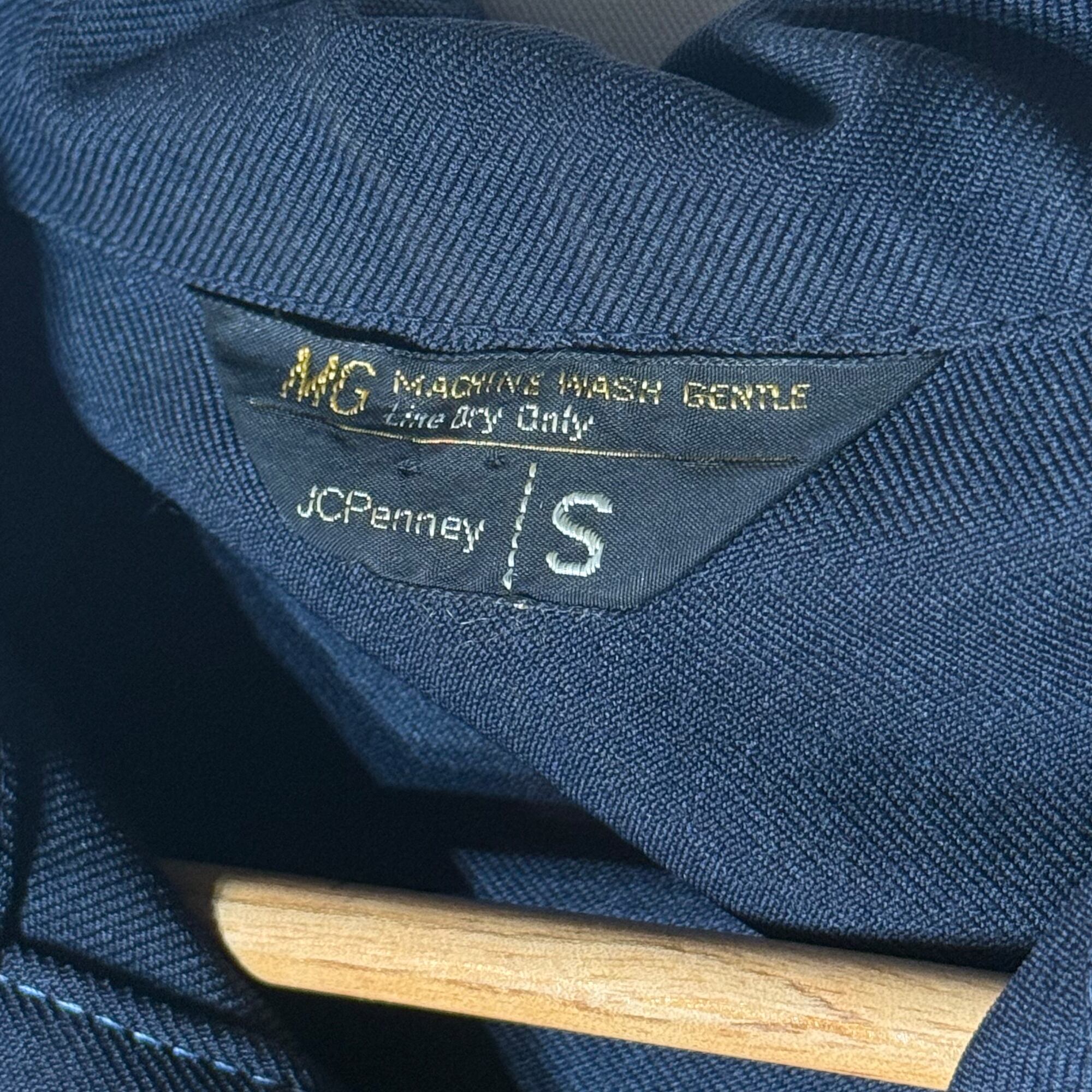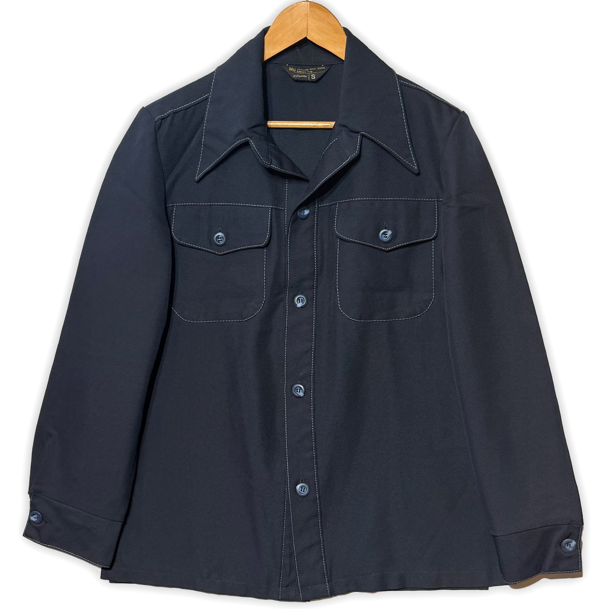 1970's USA製 JCPenney 長袖 ロングポイント ディスコシャツ ポリシャツ 紺 S