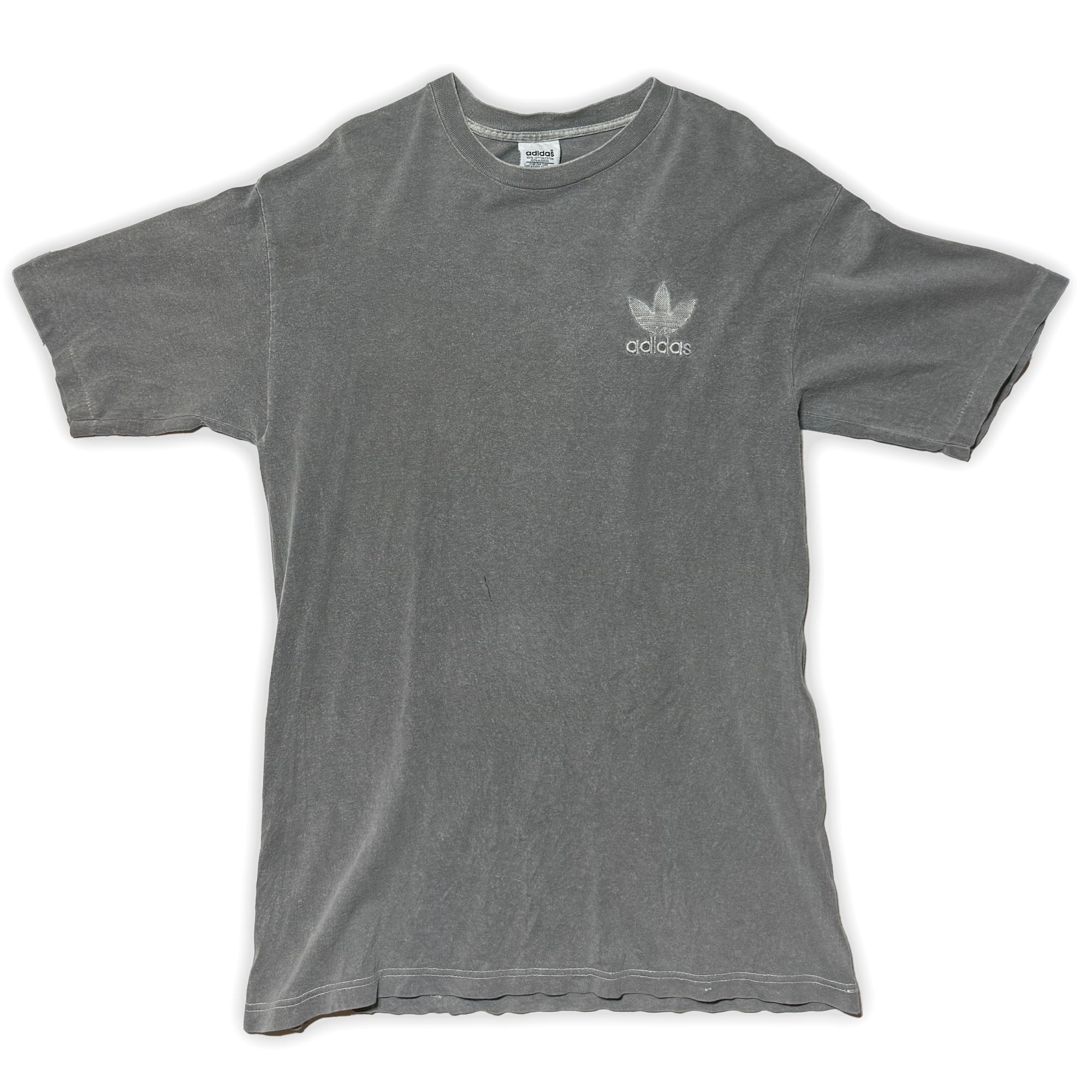 1990's USA製 adidas アディダス 万国旗タグ シングルステッチ トレフォイルロゴ 刺繍 半袖 Tシャツ グレー M