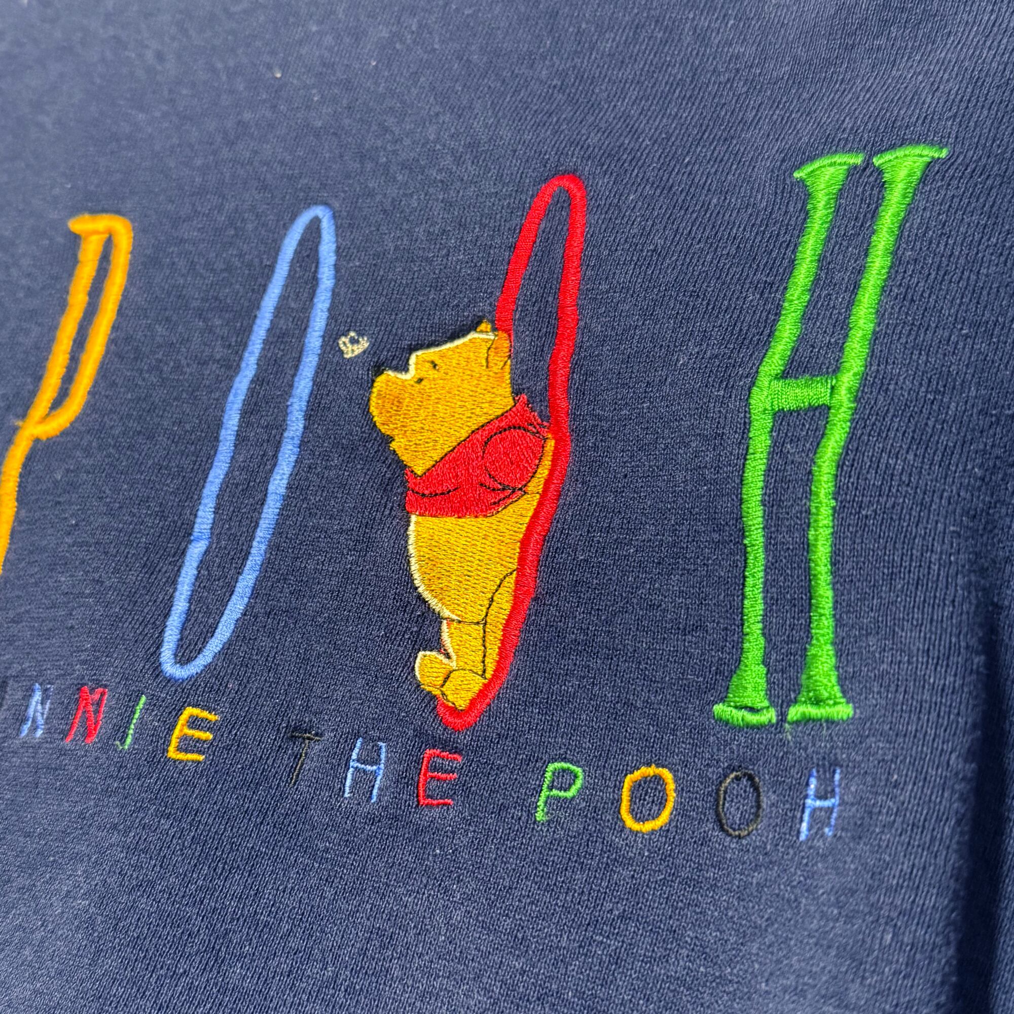 1990's USA製 Disney ディズニー くまのプーさん POOH 刺繍 スウェット ネイビー