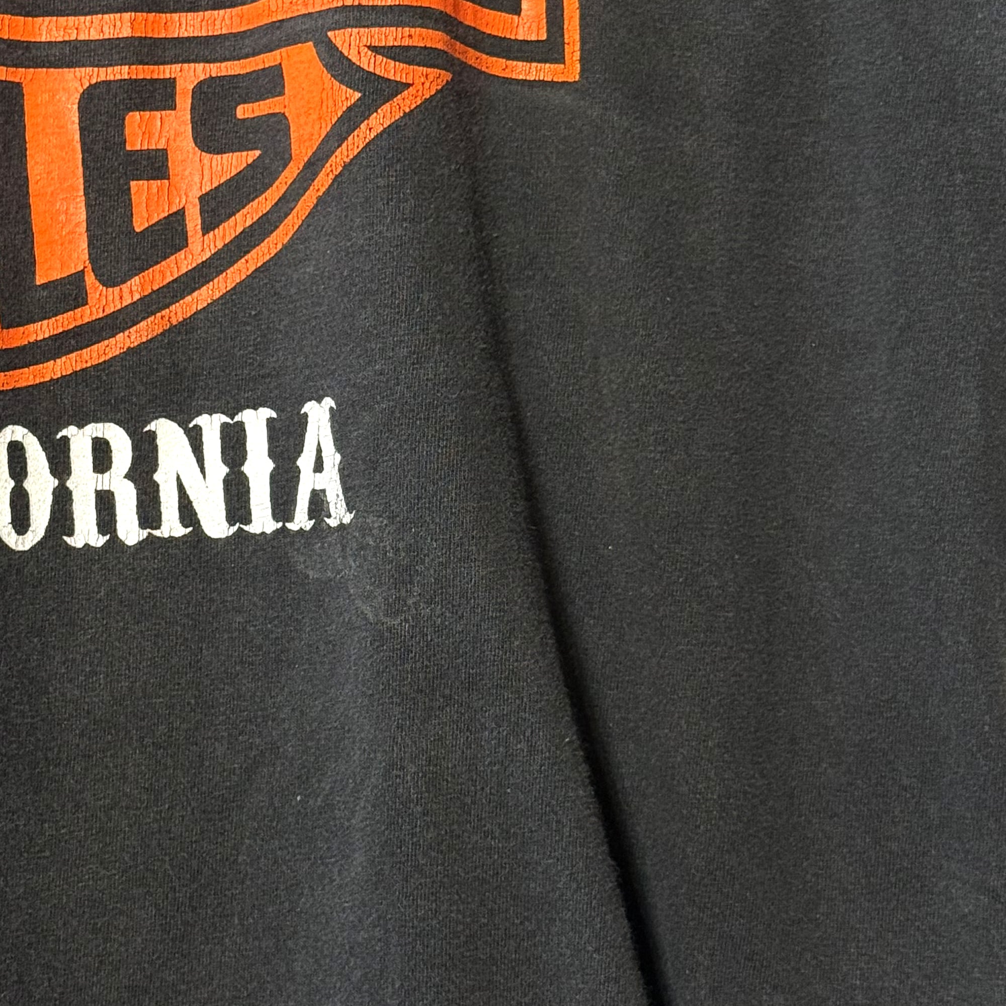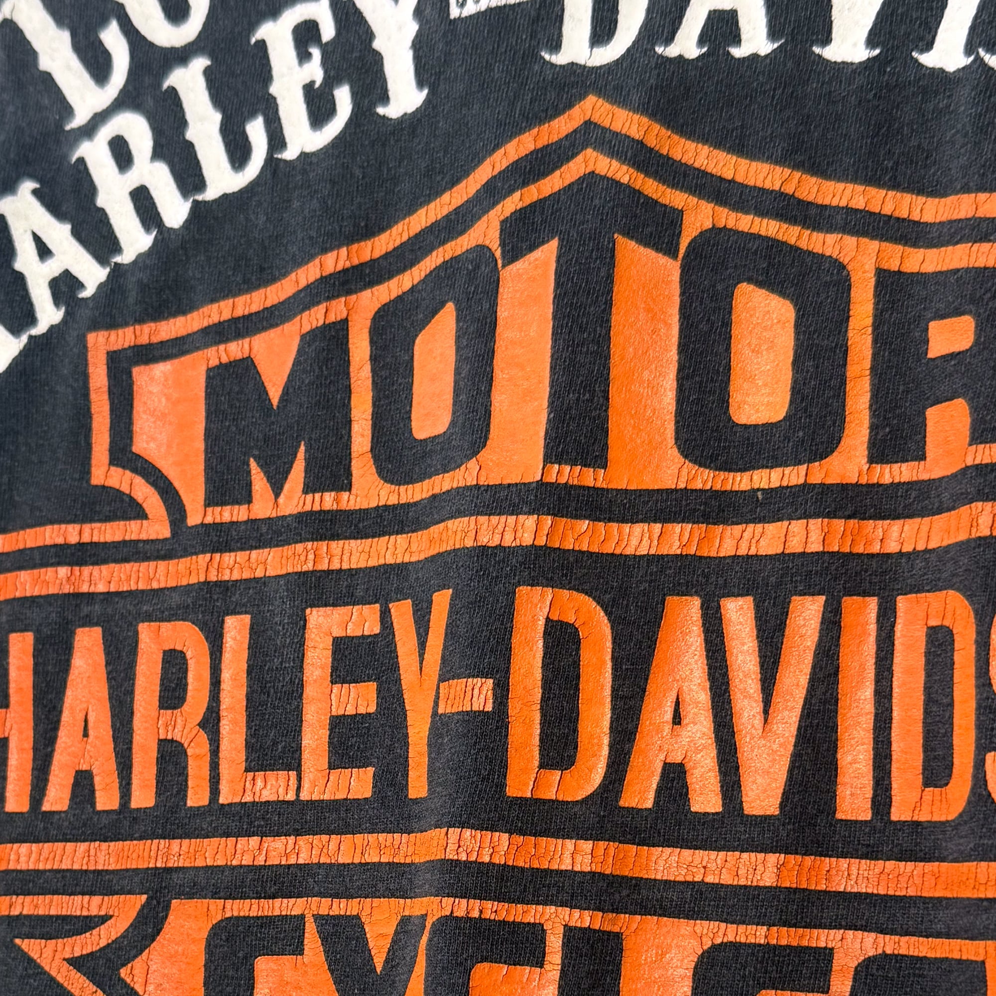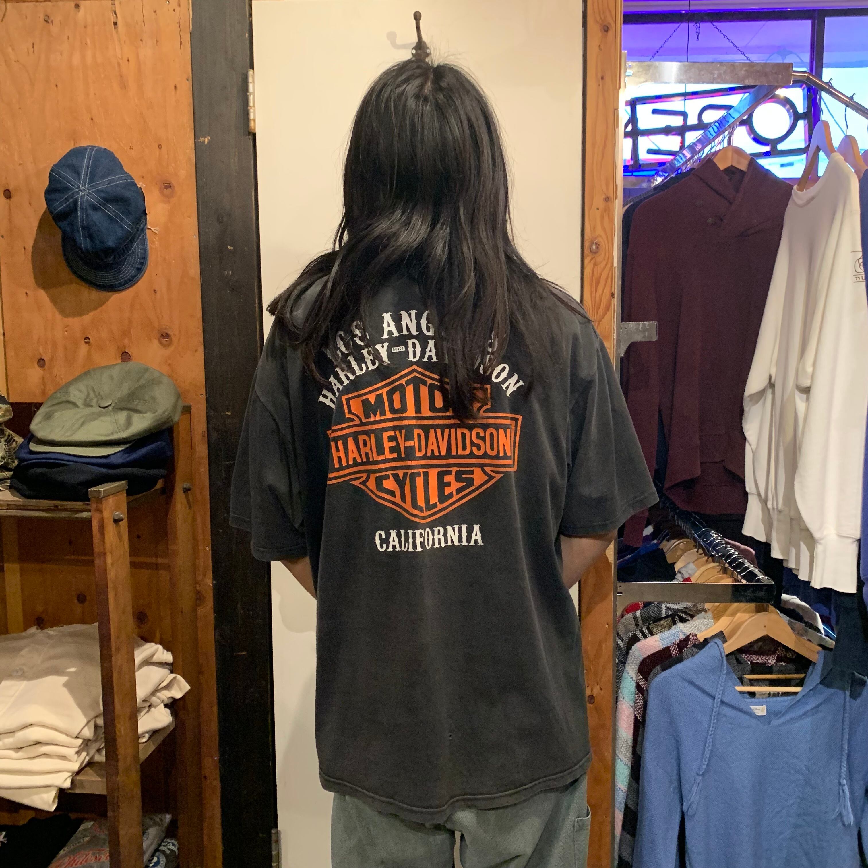 2010's 製 Harley Davidson ハーレーダビッドソン ロサンゼルス 110周年 ピンストライプ×シールドロゴ 半袖 Tシャツ 黒