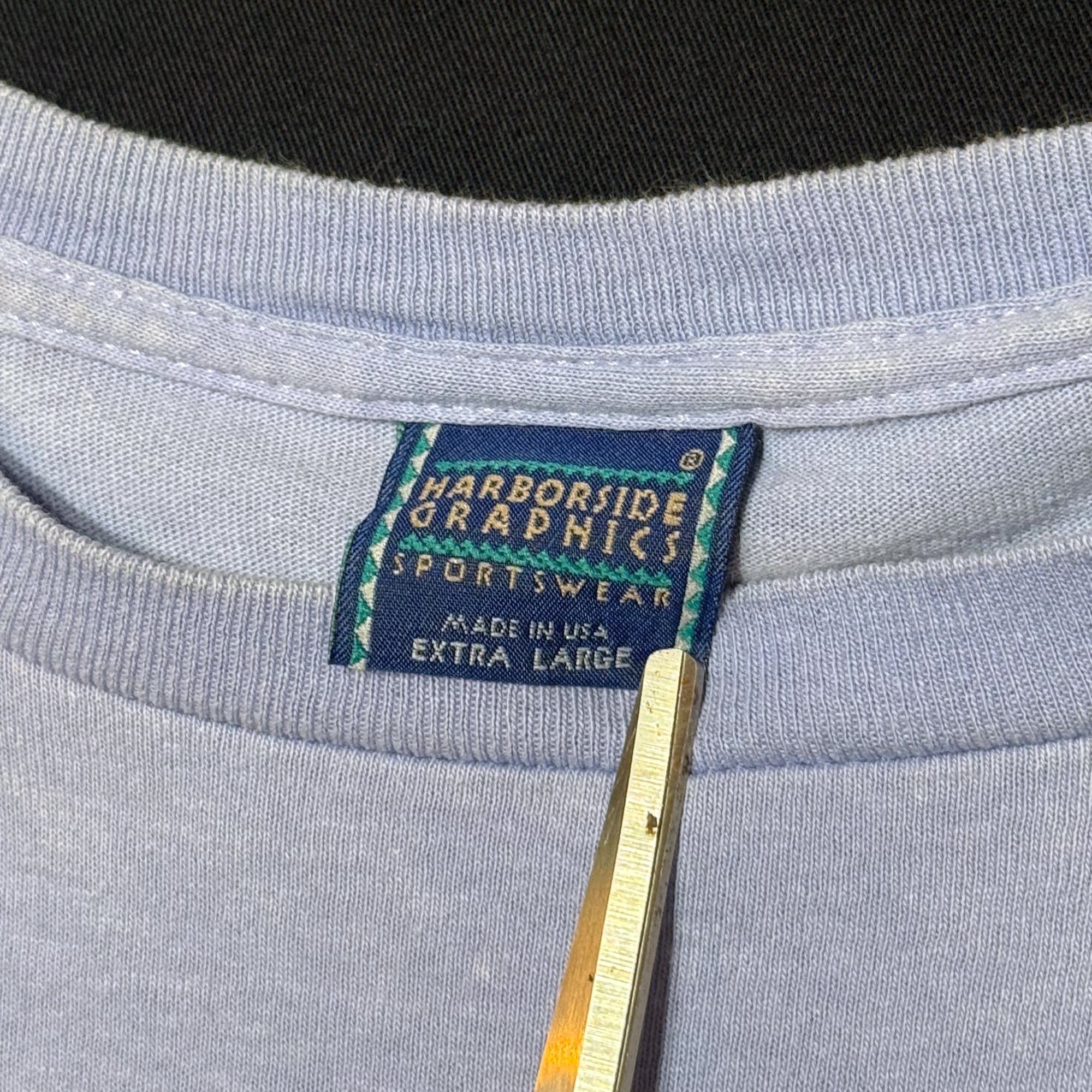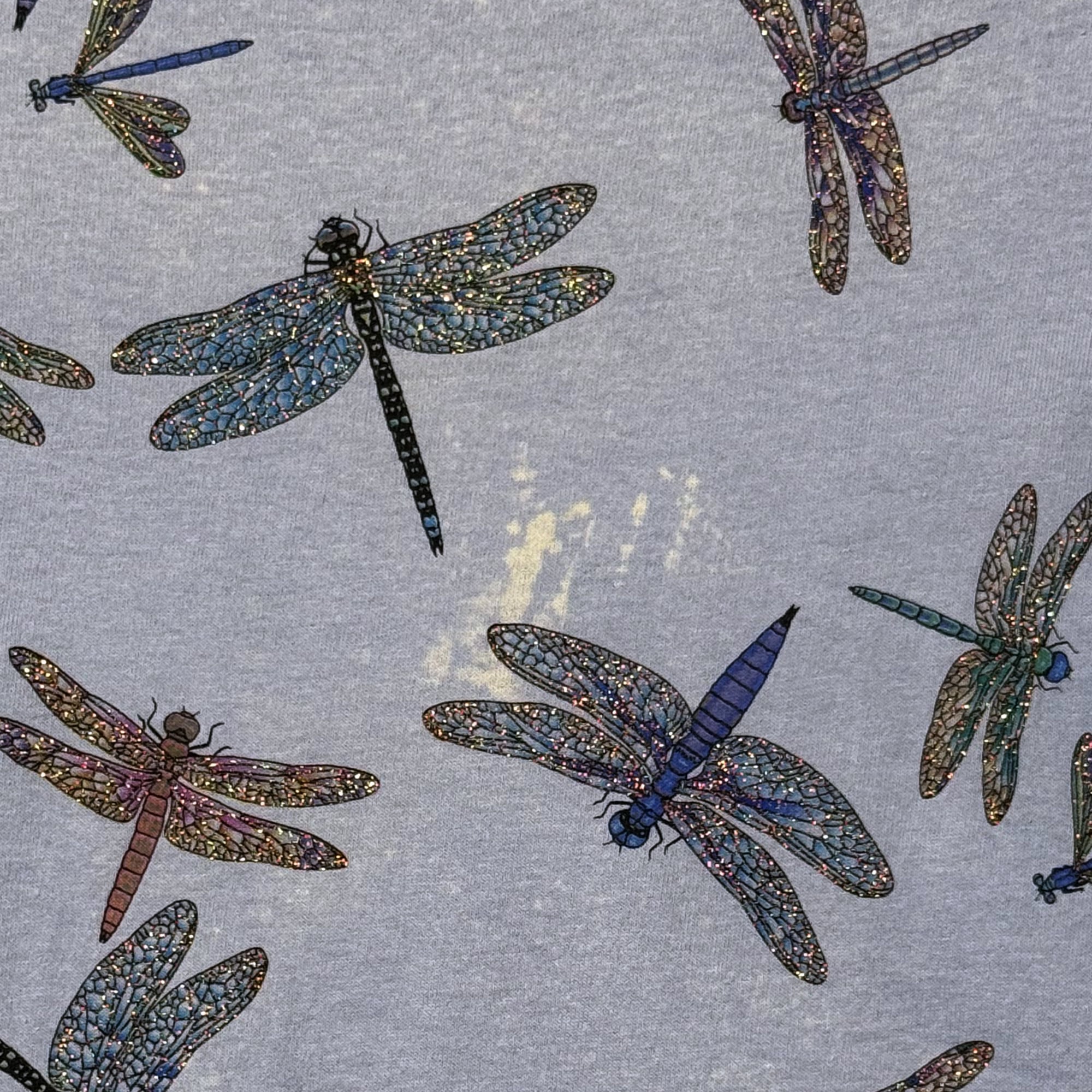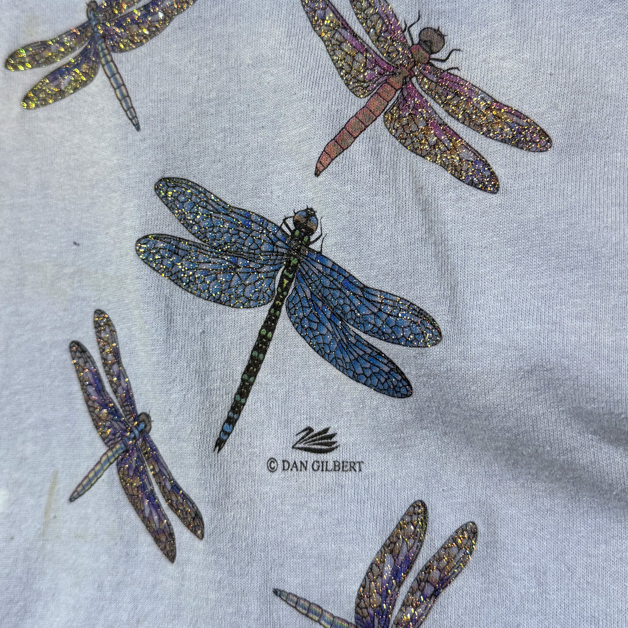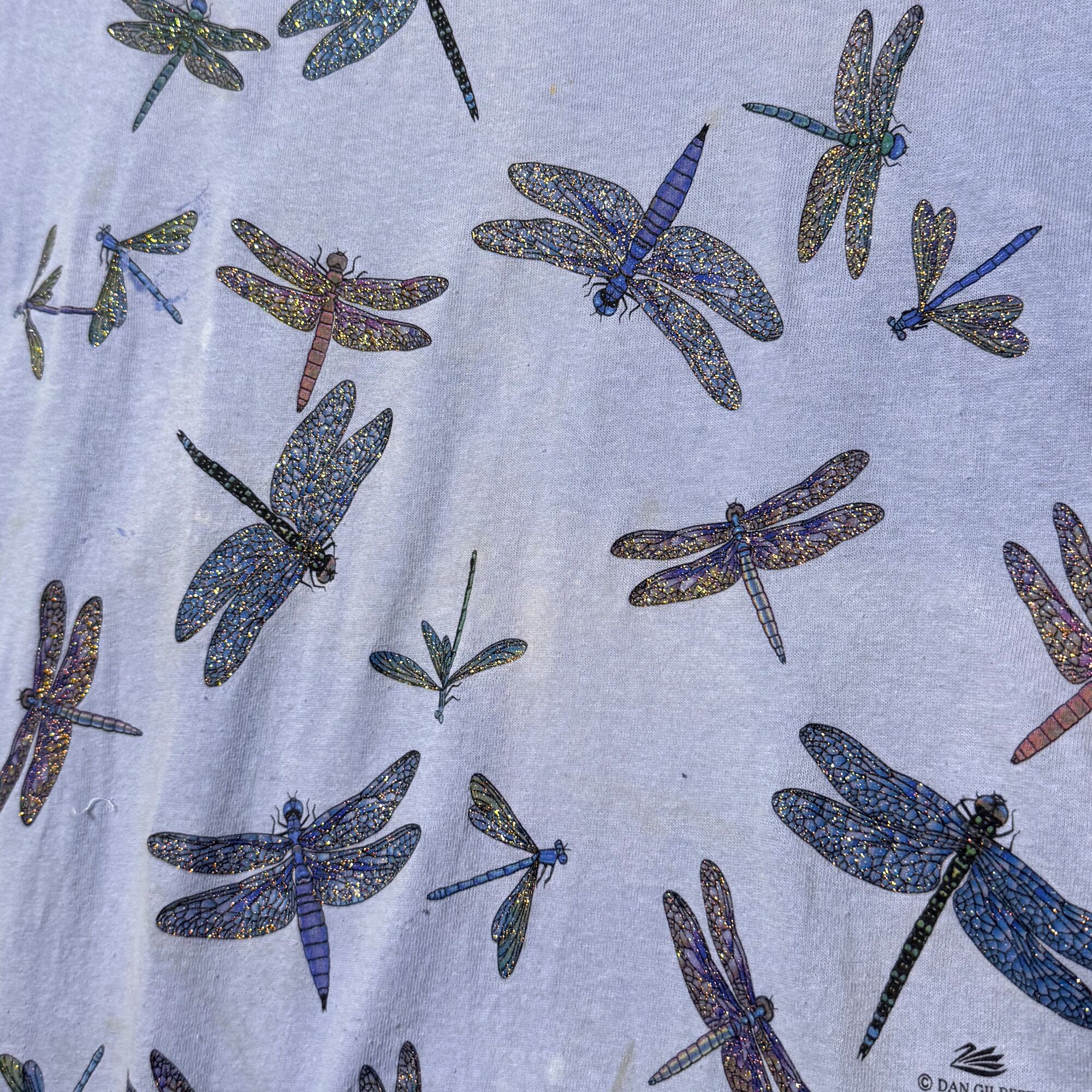 1990's USA製 DAN GILBERT トンボ 総柄 ラメプリント シングルステッチ 半袖 Tシャツ 薄紫 XL