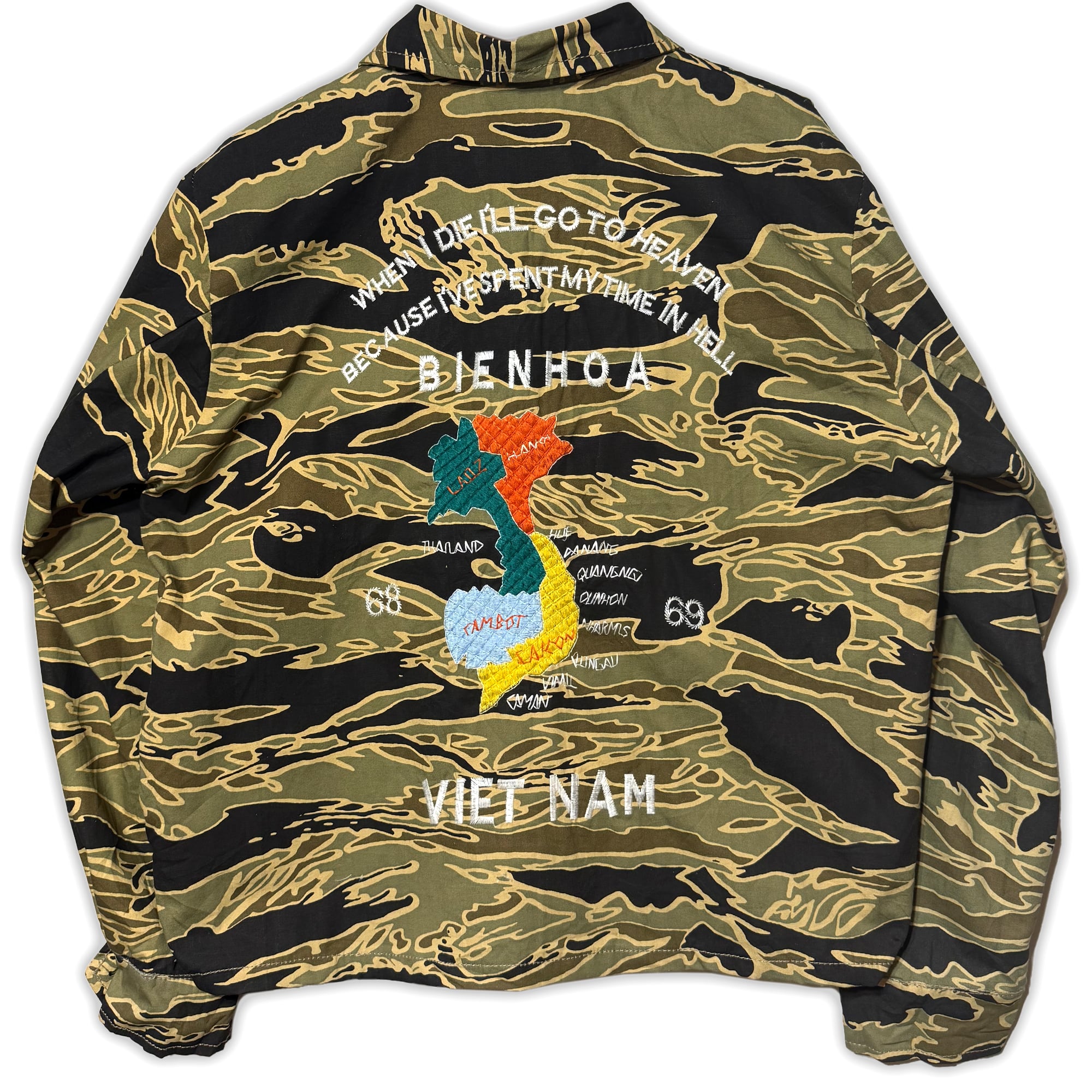 【新品】HAPPINESS ドラゴン 刺繍 ベトナムスーベニア ツイルジャケット ベトジャン タイガーストライプカモ 迷彩 XL