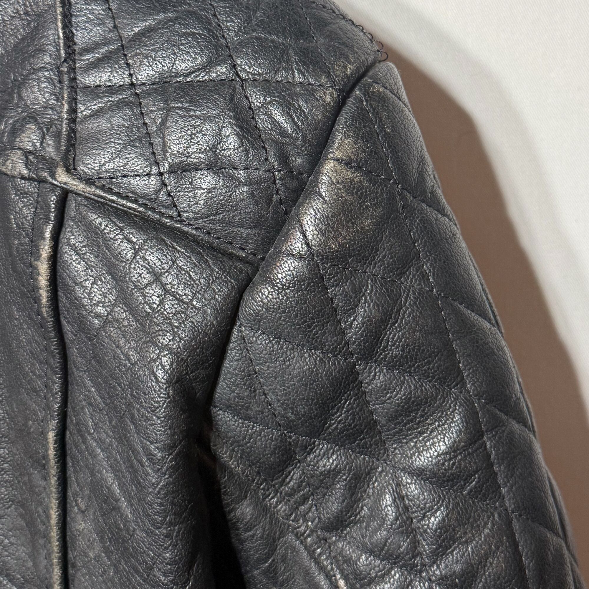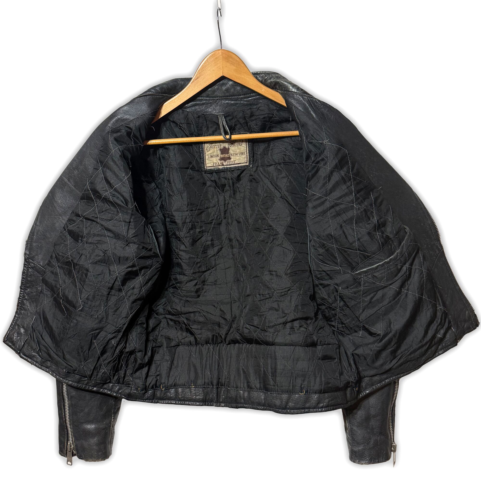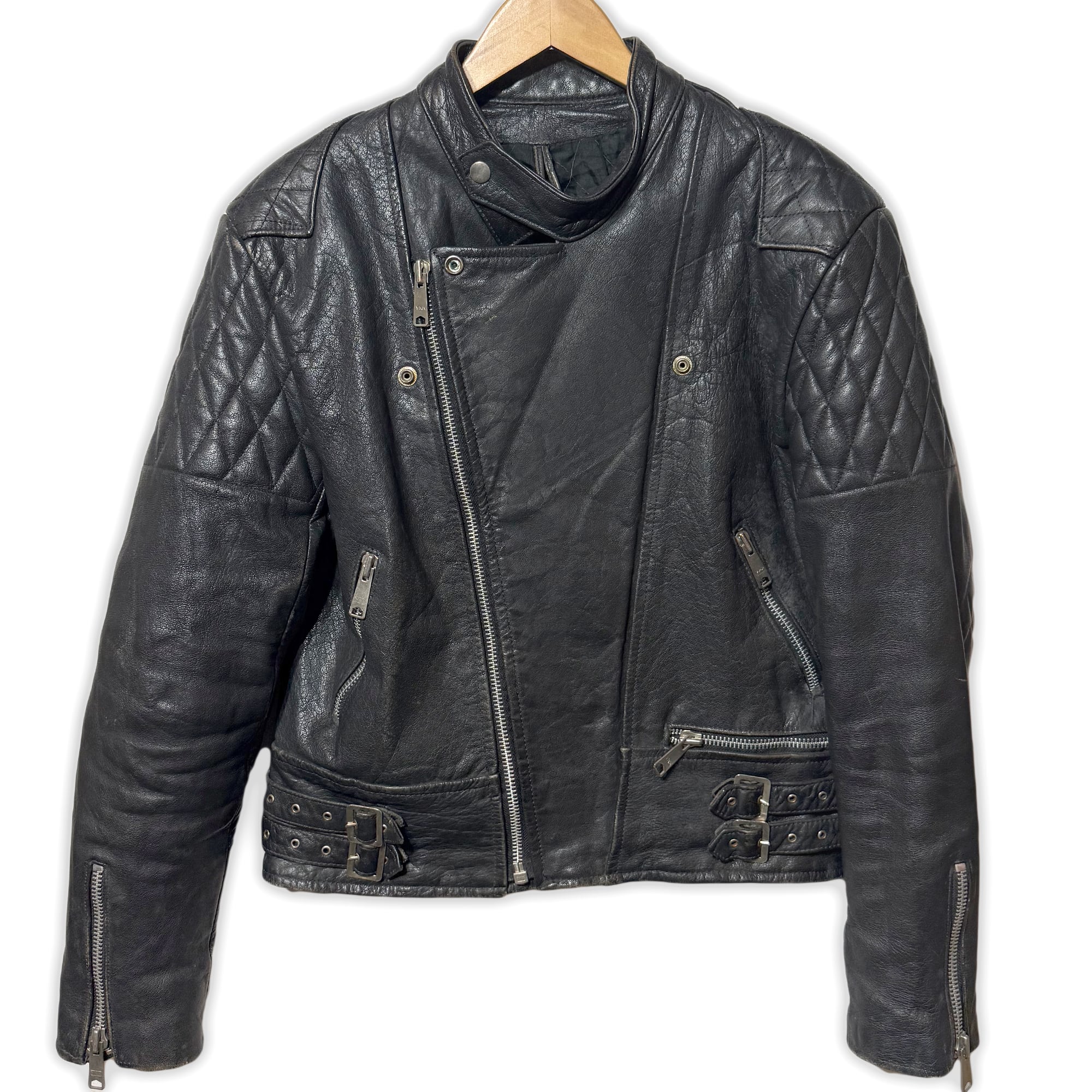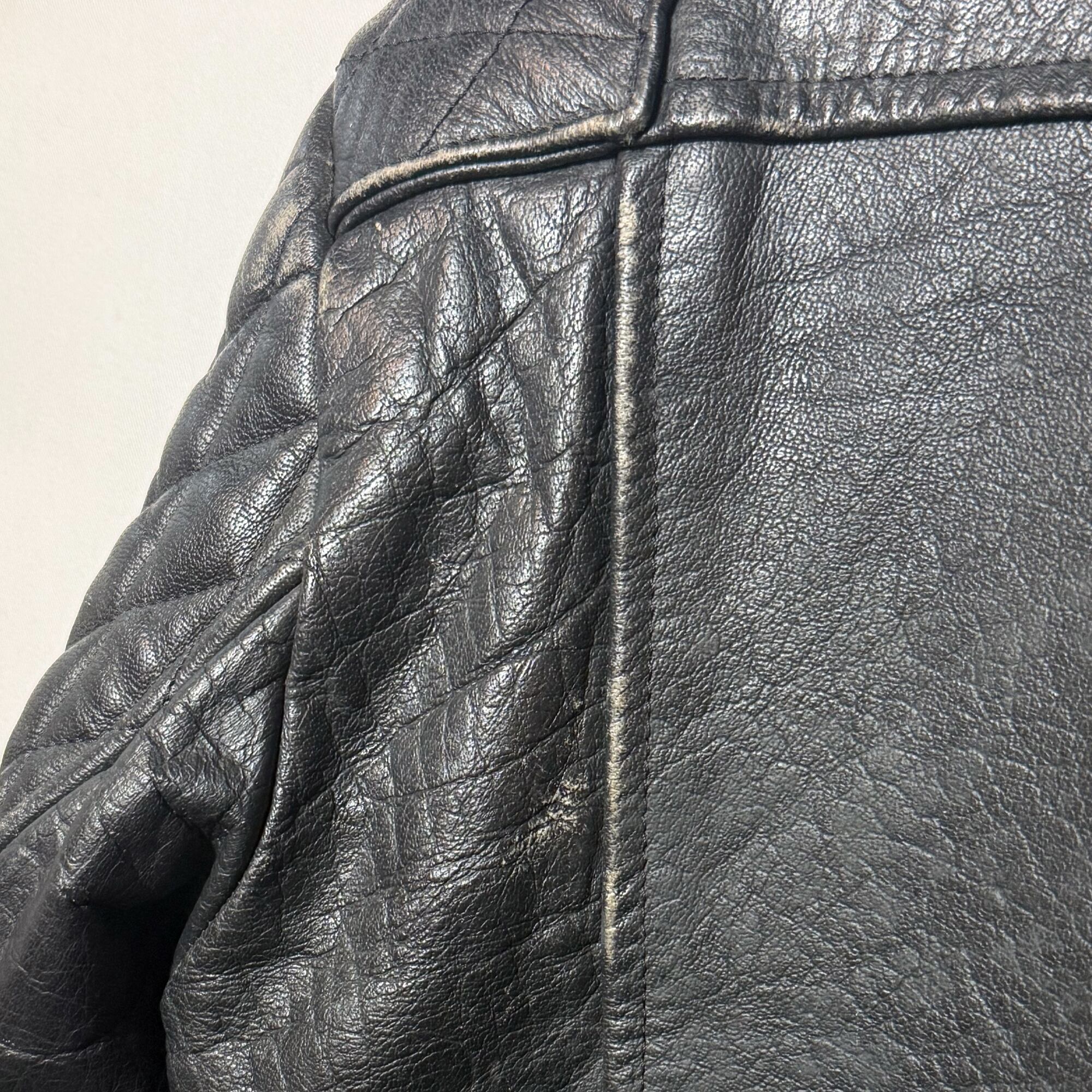 珍しいバッファローレザーが使用されたパデッドのUKライダースです。キルティングパデッドも肉厚で格好良いです。
